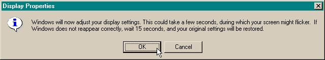 Click on OK, and your display settings will be changed. You will be asked to confirm the change with the following dialog box: